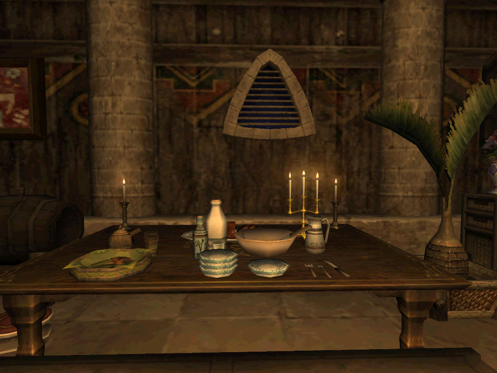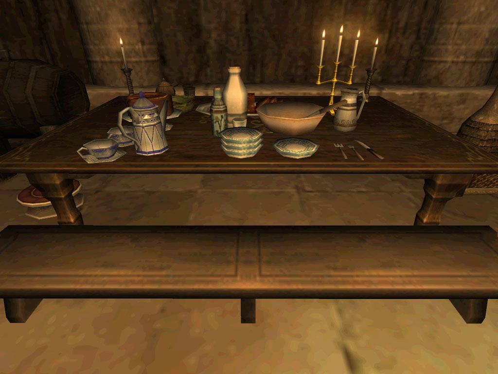 画面には見えにくいですが、果実水の樽が左手にあり、そのさらに奥にイベントのエッグ食器セットがあります。