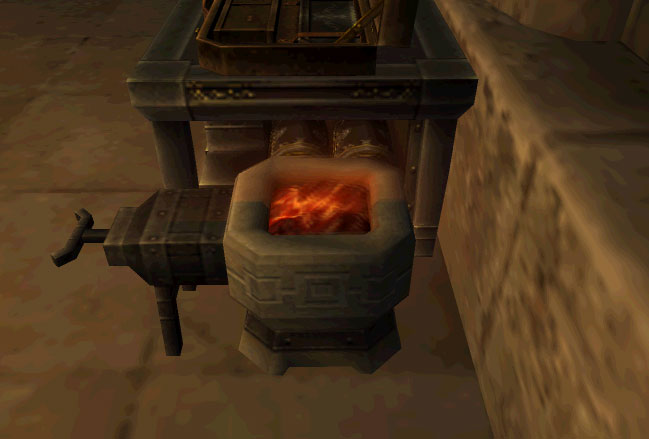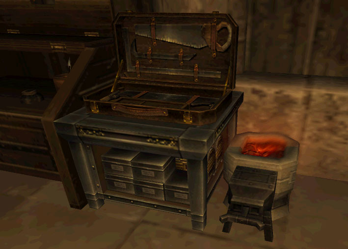 右側が炉らしきもの、左側の上が木彫木工ツール。